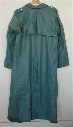 We have found a small selection of LATE WAR GERMAN MOTORCYCLE RIDERS RAIN COATS: These coats are in super great condition, with Pebble and Snap type buttons, coat raps around the leg for motorcycle riding, Coat is a rubberized Green Material, with a removable button out FIELD GREY LINING, to add warmth, or to take out in temperate weather, at present have a pretty good size selection, but these won't last for ever!!!!!!!!!!!!!!!!!!!!!!!! |