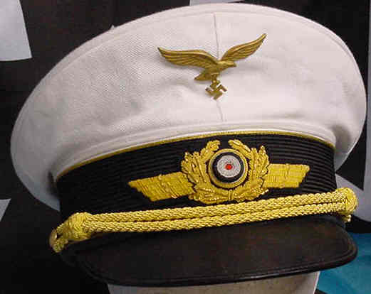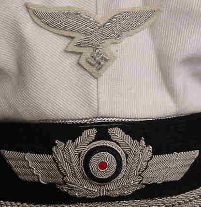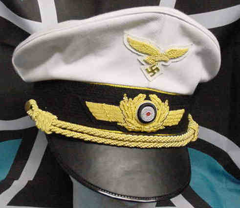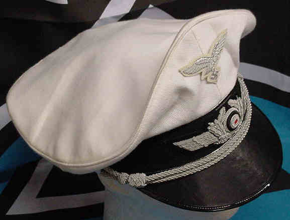PEAK CAP: Luftwaffe Officers Summer White Top Peak Visor Cap,